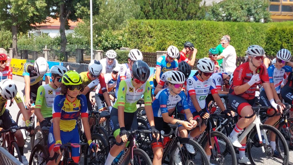 Die Juniorinnen gingen gemeinsam mit den U17-Jungs auf die technisch anspruchsvolle Kriteriumsstrecke mit einer ansteigenden Zielgeraden. 27 Runden à 1,1 km standen am Plan, mit Wertungen alle drei Runden – für die Mädchen jedoch chancenlos, da die Jungs von Beginn an ein hohes Tempo vorgaben.